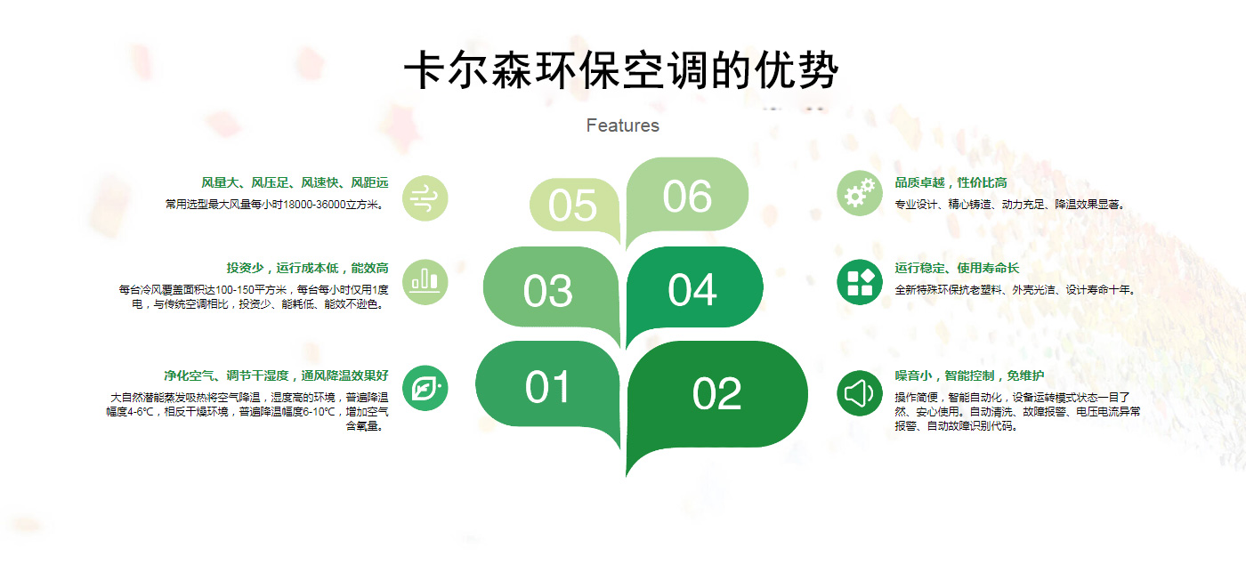 ??晉江市卡爾森機電設備有限公司是一家集設計、制作、銷售、安裝工業通風設備、中央空調、節能環保空調、脈沖除塵設備、環境凈化工程、等環保工程企業。并提供環境影響評價、環保工程總承包、環保工程設計、環保工程運營、環保工程成套設備等一站式服務。公司一直誠心服務于工業廠房的通風設施,我們的產品:“品種齊全、質量優越”。根據客戶的需求精心設計,高質量的制造,力求使每個產品都達到合理耐用、節能環保。科學的設計和精美高品質的產品,完善的服務系統,加強售前、售中、售后服務,對顧客在使用商品中出現的各種問題及時解決,使顧客無后顧之憂。產品廣泛適用于各類型制造業、機械類、五金冶煉、食品、化工、電子、紡織、噴涂、娛樂以及服務等場所。我們秉承“質理過關、價格合理、交期準時、服務周到”而受到新老客戶的好評和信賴。我們堅持“客戶至上、質量上乘”為宗旨,努力工作,為您換來潔凈美好的明天。卡爾森愿以過硬的質量,良好的信譽同各界朋友一起開創更加輝煌的未來。